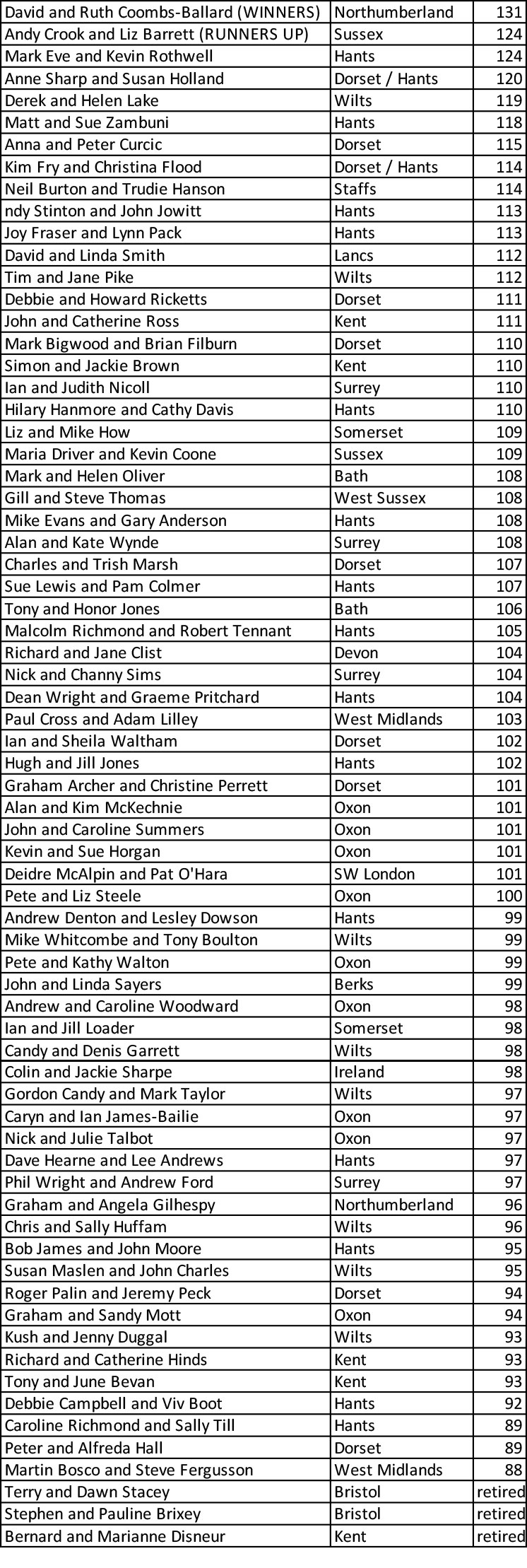 Winners: David and Ruth Coombs-Ballard (Northumberland) – 131 points