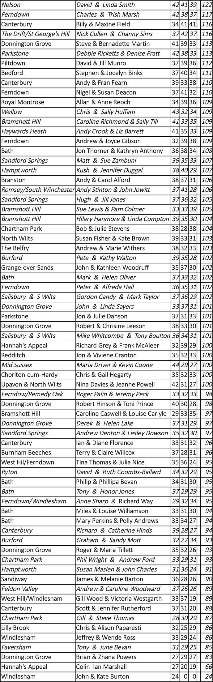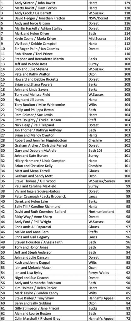 Runners Up: Andy Crook and Liz Barrett (Sussex) – 124 points